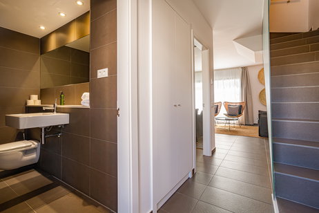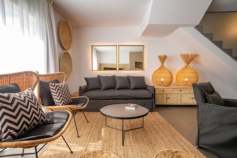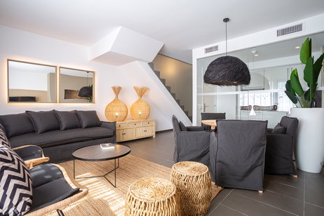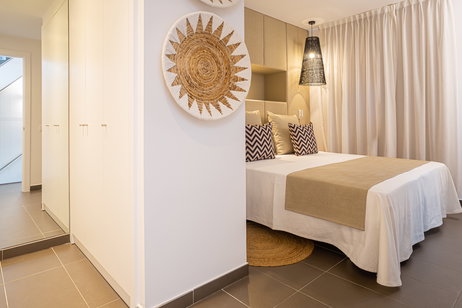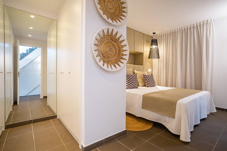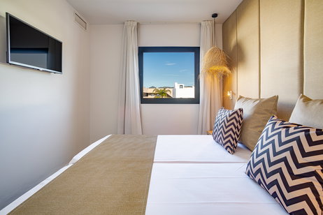 Es la más exclusiva de nuestras suites que incluye bañera de hidromasaje, vestidor, albornoz, zapatillas, amenities premium y servicio VIP. Esta habitación dispone de todos los detalles que conseguirán que a su estancia con nosotros no le falte ni un solo lujo. Déjese cuidar por nuestro servicio preferente de reservas en todo el hotel y descubra un nuevo concepto de comodidad. Dos dormitorios, uno con cama de matrimonio y otro dormitorio con dos camas individuales. La habitación de matrimonio dispone de baño y vestidor. Baño completo en planta superior y aseo en planta baja. . Salón comedor con sofá cama convertible en cama de matrimonio. Servicio de cobertura. Carta de almohadas . Cocina independiente totalmente equipada con vitrocerámica, nevera, microondas, tostador y hervidor de agua. Kit de infusiones y café. Cafetera Nespresso. Mini bar premier . Toallas para playa. Balcón y terraza solarium. Preferencia de reserva en Restaurante UNIC. Spa privado gratuito, con cita previa.