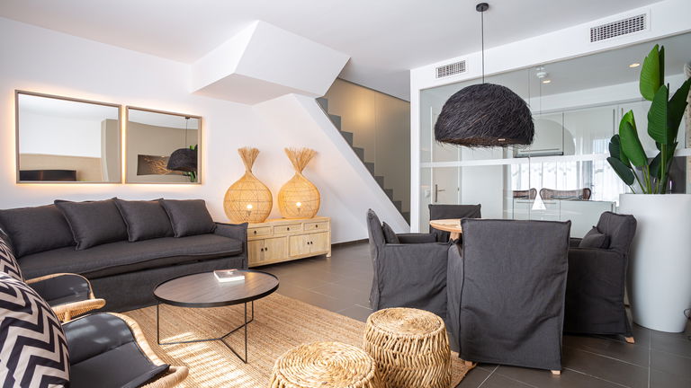 La plus exclusive de nos suites, comprenant une baignoire hydro-massage, un dressing et un service VIP. Cette chambre comprend tous les détails spéciaux pour que votre séjour chez nous comprenne tout le luxe possible. Permettez-nous de prendre soin de vous avec notre service de réservation de préférences dans tout l'hôtel et de découvrir un nouveau concept de confort. Deux chambres, une avec un lit double, une salle de bain et dressing, et l'autre avec deux lits simples. Salle de bain pleine grandeur au niveau supérieur et toilettes au niveau inférieur. . Salon-salle à manger avec canapé-lit double convertible. Service de couverture. Menu oreillers et parfums. Cuisine entièrement équipée avec plaque vitrocéramique, réfrigérateur, micro-ondes, grille-pain et bouilloire. Service à café et à thé. Cafetière Nespresso. Un mini-bar premium . Service de serviettes de plage. Balcon et terrasse ensoleillée. Préférence de réservation au restaurant UNIC. Spa privé sur rendez-vous.