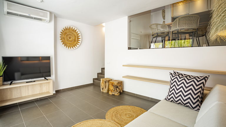 Насладитесь просторностью этого люкса, по вместимости от трех до шести человек со всеми удобствами о которых вы только можете мечтать для посещения Ибицы.
