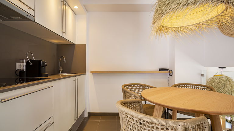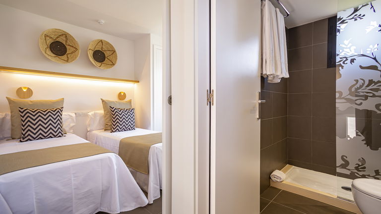 Откройте для себя все детали, предлагаемые этим эксклюзивным триплекс люксом с балконом и соляриумом. Две спальни, одна с двуспальной кроватью и одна с двумя односпальными кроватями. Набор подушек и ароматов. Оснащен полностью оборудованной кухней с плитой, холодильником, микроволновой печью, тостером и чайником. Комплект чая и кофе. Ванная комната с косметическим зеркалом и феном. Халат и тапочки. Балкон и терраса с видом на бассейн в зависимости от наличия. Гостиная с диваном-кроватью, раскладывающимся в двуспальную кровать. Плазменный телевизор. Кондиционер не охлождение и обогрев . Сейф. Телефон с прямым набором номера. Премиум мини-бар за дополнительную оплату. Пляжные полотенца. БесплатныйСпа по предварительной записи.